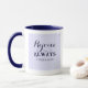 Esta linda caneca azul apresenta versos Bíblias sobre regozijo junto com o nome personalizável no verso.