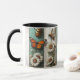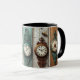 um design em estilo retrô com borboletas, abelhas, relógios e painéis de madeira
