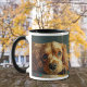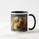 Dois lados desta caneca mostram um retrato aproximado de um cão americano coker Spaniel, de cor bege. O cachorro pequeno está com a cabeça entre as patas e esmaece o hetero. O texto no centro diz "Cocker Spaniel" mas você pode facilmente personalizá-lo ou mudá-lo para qualquer outra coisa que você queira.