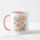 Esta caneca "Amigos sem Comida" apresenta uma citação com flores retrorreflectoras e animais de fazenda.