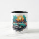 Add a splash of style to your morning routine with this mug featuring a teal Chevy in front of a dramatic sunset and city skyline. Perfect for car lovers, this mug combines retro cool with vibrant art, making it an ideal gift or daily go-to cup.