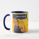 Esta caneca mostra a imagem poster da Segunda Guerra Mundial de Rosie, o ribeiro mostrando sua força de braço, e a legenda que diz, "Mamãe pode fazer isso!" A imagem está principalmente em azul e ouro coloridos. O texto personalizável no centro diz atualmente "Melhor Mãe Nunca" e "Dia de as mães 20XX", mas pode ser facilmente alterado ou removido.
