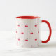 Start your morning with this cheerful cherry pattern mug. The hand-drawn retro design pops against the pinstripe background. Customize with a red handle and interior for the ultimate cohesive look.