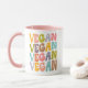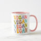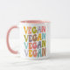 Esta simples caneca "Vegan" apresenta uma palavra em cores retrorreflectoras.