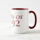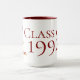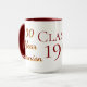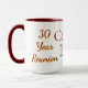 Caneca branca celebrando o evento de 30 anos de reunião, tudo em cores escolares.