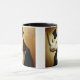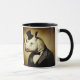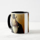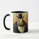 Ponha seu melhor casaco à frente com uma bebida quente vinda desta caneca com dois cavalheiros rinocerontes vestidos de tuxedos e chapéus de cima.