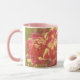 Esta caneca bonito apresenta minha fotografia original de rosas bonito, rosa e amarelas, estilhaçadas em uma técnica ilustrada e parecerosa para uma aparência artística e abstrato. O cabo e dentro da xícara são um tom de rosa claro para complementar o trabalho de arte. Estas são canecas de 11 onças, do tamanho perfeito para o café ou chá da sua casa - ou até chocolate quente! Ele faria um presente de excelente e você poderia colocar pacotes de café, bolsas de chá ou dentro de chocolate quente. Uma outra ideia de presente é colocar uma pequena planta nela para torná-la mais especial para o seu amado.