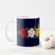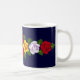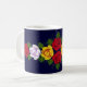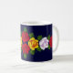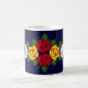 Uma caneca do café ou do chá para seu narrowboat ou sua casa como um lembrete de sua última viagem do canal, com os rosas vermelhos, amarelos e brancos que são pintados tradicional em narrowboats no Reino Unido. A cor azul escuro do fundo pode ser mudada para combinar seu barco.