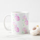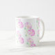 Uma bonito caneca branca com lábio e alça azul em pó, coberta de rosas cor-de-rosa, de uma pintura aquosa de Judy Adamson. Cartões de saudação correspondentes também disponíveis.