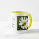 Ein niedlicher rot rot-schwarz gestreifter Käfer auf weisser Margerite ziert diese fröhliche Tasse, hier mit gelbem Henkel und Rand. Die Tasse ist in vielen verschiedenen Varianten und Farbkombinationen erhältlich. Sie ist auch pedágio mit schwarzem Henkel oder ganz no weiss.