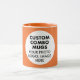 Round ORANGE siongle image frame custom Combo Mug for photo or logo, 11 oz., 3.2" diameter x 3.8" high, with ORANGE background single image frame (one central customizable design area) providing maximum coverage of the mug in ORANGE. See store for more templated font options. The background color has been chosen to closely resemble the combo mug inside and handle color but may not match exactly, due to the difference between printing and enamel tones.
