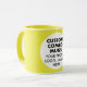 Round YELLOW siongle image frame custom Combo Mug for photo or logo, 11 oz., 3.2" diameter x 3.8" high, with YELLOW background single image frame (one central customizable design area) providing maximum coverage of the mug in YELLOW. See store for more templated font options. The background color has been chosen to closely resemble the combo mug inside and handle color but may not match exactly, due to the difference between printing and enamel tones.