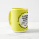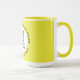 Round YELLOW single image frame Large custom Combo Mug for photo or logo, 15 oz., 3.4" diameter x 4.5" high, with YELLOW background single image frame (one central customizable design area) providing maximum coverage of the mug in YELLOW, plus personalized text template optimized for the COPPERPLATE BOLD font (you may need to slightly adjust the curvature and position of the text if changing font style or size). See store for more templated font options. The background color has been chosen to closely resemble the combo mug inside and handle color but may not match exactly, due to the difference between printing and enamel tones.
