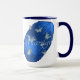 Um nome monograma da letra M caneca com um brilho de tinta azul real com borboletas azuis é uma bela adição a esta modelo de design que pode ser ajustada para ter qualquer nome para o amante do café em sua vida.