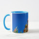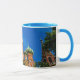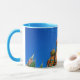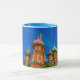 Vista aproximada de cúpulas de Ruas. Catedral de Basil na Praça Vermelha de Moscou, Rússia, contra o céu azul. A catedral também é conhecida como Vasily, Catedral Abençoada, e Catedral da Intercessão dos Teotógrafos Mais Sagrados no Moat. Foi consagrada em 1561. A catedral não tem analogias na arquitetura anterior, contemporânea ou posterior da tradição cultural da Muscovy e da Bizantina. Caneca de café.