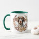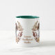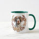 Uma bonito coroa de outono em tons de cinamão marrom, bronzeado e creme rodeia a imagem de um Ponteiro Alemão Curto. A imagem do cão é impressa duas vezes na caneca, com o seu texto personalizado entre eles.