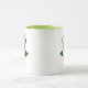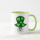 Um cogumelo cartoon com uma tampa verde em forma de chapéu de duende. O boné tem manchas de shamrock. O caule branco tem um smiley face.