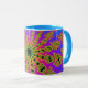 Esta caneca de café fractal colorida tem cores brilhantes e vibrantes, como o lacre, o rosa e o amarelo. Estas canecas têm várias cores diferentes para escolher entre a dentro e a alça da caneca. Além disso, você pode escolher entre o estilo e o tamanho dessas canecas. Estas canecas são excelentes para uso na cozinha e no escritório.