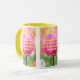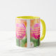 Esta caneca mostra o verso da bíblia "Salms 1:2" do KJV em letra impressão com letras néon amarelas mais a citação bíblia sobre uma foto de uma rosa rosa rosa com fundo floral neste verso bíblico e tema da bíblia Rei James. A jante e o manípulo são vidrados em cores compatíveis, disponíveis em micro-ondas e máquinas de lavar louça de tamanho 11 onças ou 15 onças, construindo cerâmica segura.