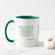 Esta caneca de dois tons tem a escritura de bíblia "Salms 24:4-5" KJV em uma letra de impressão lovelo ousada com letras verdes e citação de bíblia azul neste tema de citação bíblia do Rei James bíblia. A jante e o manípulo são vidrados em cores compatíveis, disponíveis em micro-ondas e máquinas de lavar louça de tamanho 11 onças ou 15 onças, construindo cerâmica segura.
