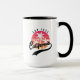 Caneca de San Jose com um design que apresenta um pôr do sol retrô. Este design também tem a Califórnia em uma fonte manuscrita com um glifo de cauda de inchaço para aquele olhar na moda. Esta caneca é só para você se você é de San Jose ou se é um presente ou souvenir.