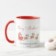 Um café de Natal festivo ou uma caneca de cacau quente com uma ilustração do Papai Noel cavalgando uma rena, cercada por uma design de férias engraçada. Personalize esta caneca de feriado confortável com seu nome de família ou texto personalizado para um toque especial. É o presente perfeito para crianças, netos, ou qualquer membro da família para curtir durante o feriado!