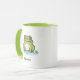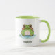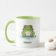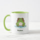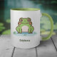 Uma caneca com uma ilustração de um sapo fofo no seu lago e texto personalizável abaixo! Pode ser perfeito para uma criança ou um amigo que ama o animal e a natureza de Kawaii!