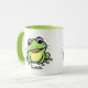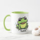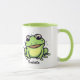 Sapo de desenho verde bonito desenhando caneca personalizada de café com a mensagem "você tem que beijar alguns sapos para encontrar seu príncipe!" Excelente para um amigo ou parente que passa pelo coração que precisa de encorajamento.