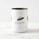 Uma caneca engraçada com cabeças de alienígena verdes, disco voador e uma mensagem personalizável "Acredite"! Perfeito para um café da manhã geek!