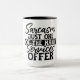 Esta caneca apresenta uma design divertida e espirituosa com o texto "Sarcasm Only One of the Many Services Offer" em fontes ousadas e na moda. A mensagem humorística faz dela um presente perfeito para aqueles que apreciam uma boa dose de sarcasmo na sua rotina diária. O texto preto sobre fundo branco garante que a mensagem se sobressaia, adicionando um toque de personalidade ao café ou aos intervalos de chá.