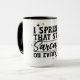 Comece seu dia com um traço de sagacidade e humor com nossa caneca de "Sarcasmo borrifado". Perfeito para aqueles que apreciam a bela arte do sarcasmo, esta caneca apresenta uma declaração ousada sobre um fundo preto elegante: "Sarcasmo. Eu borrifo isso em tudo." É o companheiro ideal para seu café ou chá matinal, adicionando um toque de ironia lúdica a cada gole. Esteja você em casa ou no escritório, avise a todos que seu senso de humor está sempre no ponto!