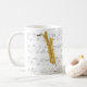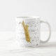 Caneca com partitura e o saxofone baixo. Grande presente para músicos e melómanos.