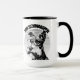 Retrato preto-e-branco de um mini schnauzer com óculos num fundo de pôr do sol no estilo de safra. O presente perfeito para amantes schnauzer.