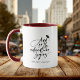 E então começa a aventura! Uma caneca de presente de celebração moderna com um design de caligrafia de script elegante e sua mensagem de texto personalizada de parabéns ou nome, classe de etc para o formando abaixo.