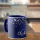 Caneca script do nome do monograma da brilha azul do mari