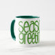 Um design de texto digital desenhado à mão dizendo Saudações de Season em verde, para desejar à família, amigos ou parceiros corporativos e clientes um Feliz Natal, Feliz ano novo e melhores votos para a próxima temporada festiva!