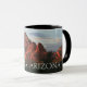 Branco e preto 11 oz. caneca combinada com uma imagem de várias formações rochosas vermelhas em Sedona, Arizona iluminada por um incrível pôr do sol vermelho e laranja. Ver pote de doces correspondente, placa de papel, azulejo e portas copos de cerâmica quadrada. Veja toda a coleção de Arizonas Mug na seção HOME.