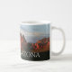 Branco e preto 11 oz. caneca combinada com uma imagem de várias formações rochosas vermelhas em Sedona, Arizona iluminada por um incrível pôr do sol vermelho e laranja. Ver pote de doces correspondente, placa de papel, azulejo e portas copos de cerâmica quadrada. Veja toda a coleção de Arizonas Mug na seção HOME.