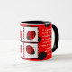 Caneca de café que caracteriza quatro joaninhas e duas legendas sobre eles.