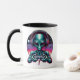 Ser alienígena jogando videogames com fones de ouvido e controle na mão. Arte alienígena colorida de IA.