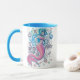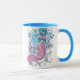 Uma sereia de cabelo azul bonito, com um tailfin cor-de-rosa, vestindo uma parte superior feita das pérolas e dos seashells.