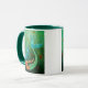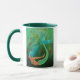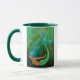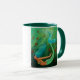 Uma sereia mergulha em um mar verde calmo e relaxando da luz e da estrela do mar. Formulário reproduzido a pintura da arte da fantasia por Sue Halstenberg.