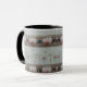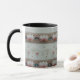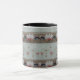 Bring tranquility to your table with this beautiful Combo Coffee Mug. It features the unique Lotus & Eye Stripe pattern on one side, symbolizing clarity and peace. The reverse side showcases the serene Boho Floral Landscape over a knitted mountain range, capturing a peaceful sunset scene. Both designs elegantly incorporate the neutral wide stripe weave. This mug is perfect for those who seek minimalist spiritual and cottagecore nature aesthetics, making it an exquisite, thoughtful gift.