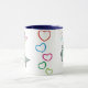 Dois tubarões-cinza abraçando cada um com suas caudas e corações coloridos.