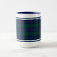 Caneca de café com tartã para Clan Shaw e suas sebes, incluindo Eason e Sheehan. Padrão real da xadrez escocesa azul e verde de 1845, com sotaques preto e vermelho.