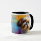 Esta caneca brilhante e muito colorida celebra o adorável cão Shih Tzu! Dois lados da caneca têm um belo retrato de um pequeno Shih Tzu contra um fundo brilhante. As cores predominantes incluem laranja, ouro, azul e muito mais. No centro está um roteiro que diz Shih Tzu, mas você pode mudá-lo ou até mesmo personalizá-lo, se quiser. Esta caneca vai ser notada!