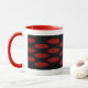 Impressão modelado com motivo de Shou, para a longevidade, em cores vermelhas pretas e corais. Shoushan é uma abreviatura para do "o hai do fu de Shan shou, essa significa que "maio sua vida seja tão constante quanto as montanhas e sua boa fortuna tão ilimitadas quanto os mares."