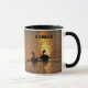 Uma foto de dois gansos canadenses em uma Reflexão Sunset Ouro que é brilhante e colorida em Hutchinson Kansas USA que estava em um POND. Isso está em um MUG (CUP)>