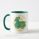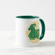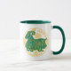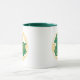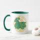 Sinal do zodíaco em verde e amarelo numa caneca de café de duas tonalidades.