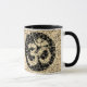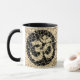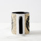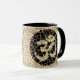 Símbolo de om artístico num fundo de mármore preto bronzeado com alça preta correspondente e interior preto. Meditativo.